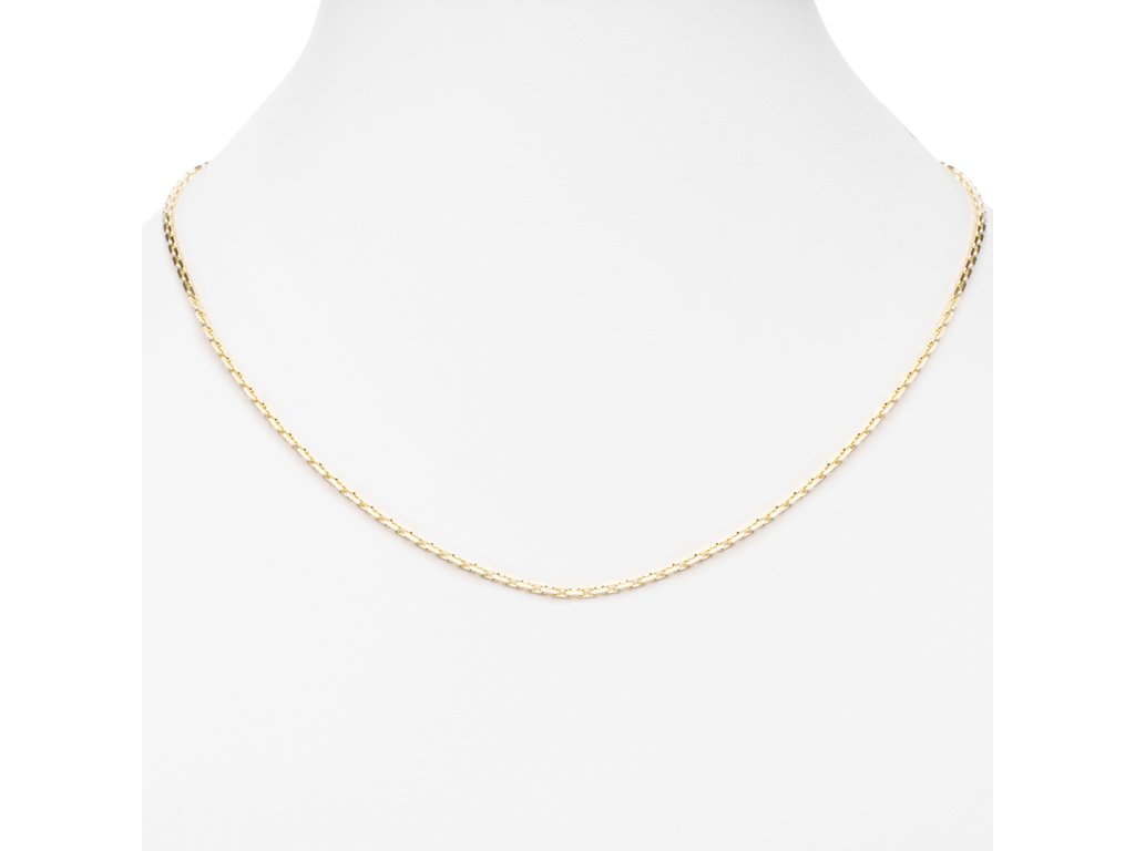 Je vyrobená z pravého 14K (585) žltého zlata a tvorí ju jemná, rovnomerne prepojená očková štruktúra, ktorá pôsobí elegantne, decentne a univerzálne. Hrúbka približne 1 mm zabezpečuje jemný, no stále viditeľný vzhľad – ideálna voľba na každodenné nosenie.