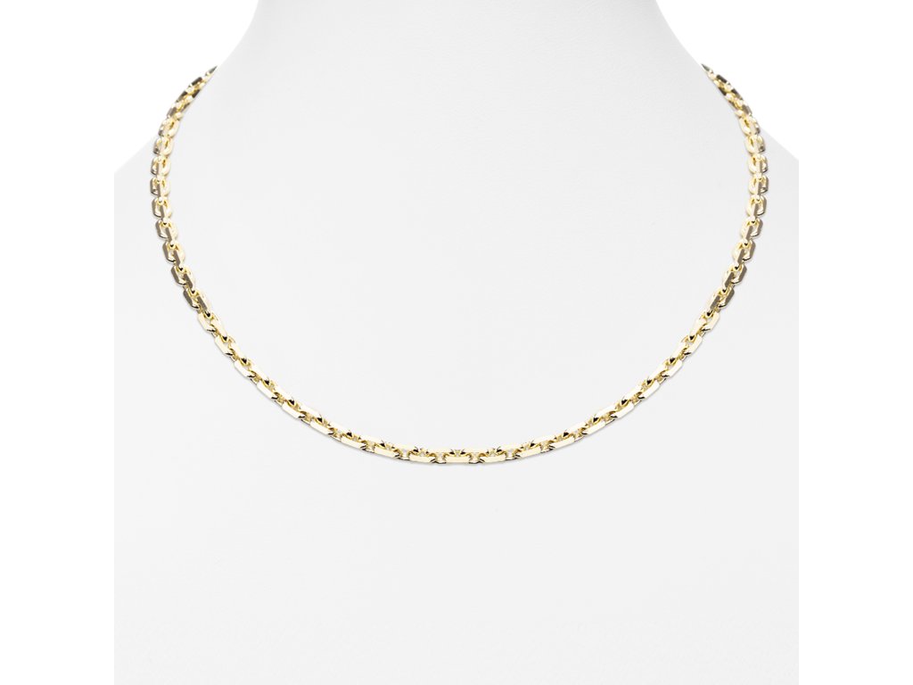 Je vyrobená z pravého 14K (585) žltého zlata a tvorí ju jemná, rovnomerne prepojená očková štruktúra, ktorá pôsobí elegantne, decentne a univerzálne. Hrúbka približne 1 mm zabezpečuje jemný, no stále viditeľný vzhľad – ideálna voľba na každodenné nosenie.