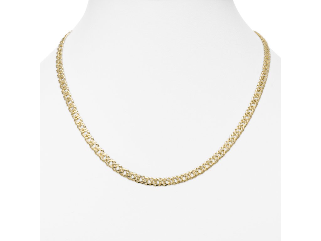 Je vyrobená z pravého 14K (585) žltého zlata a tvorí ju jemná, rovnomerne prepojená očková štruktúra, ktorá pôsobí elegantne, decentne a univerzálne. Hrúbka približne 1 mm zabezpečuje jemný, no stále viditeľný vzhľad – ideálna voľba na každodenné nosenie.