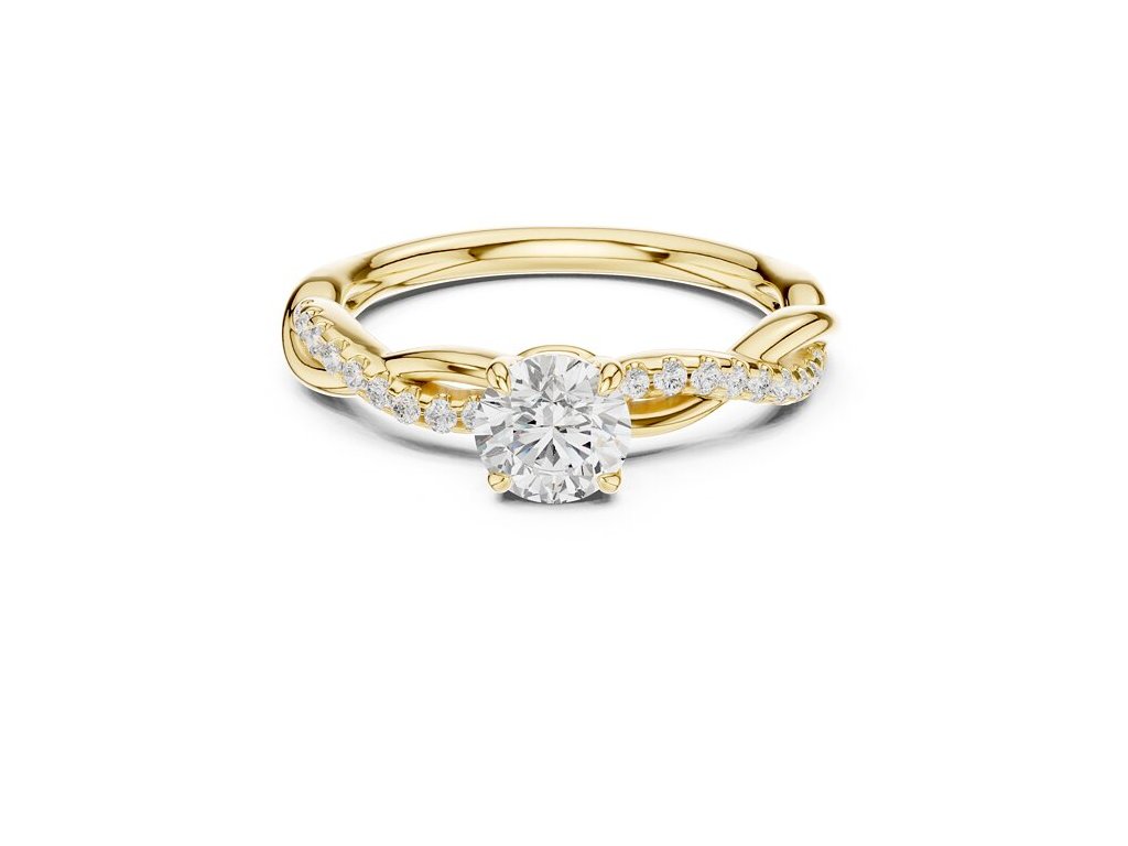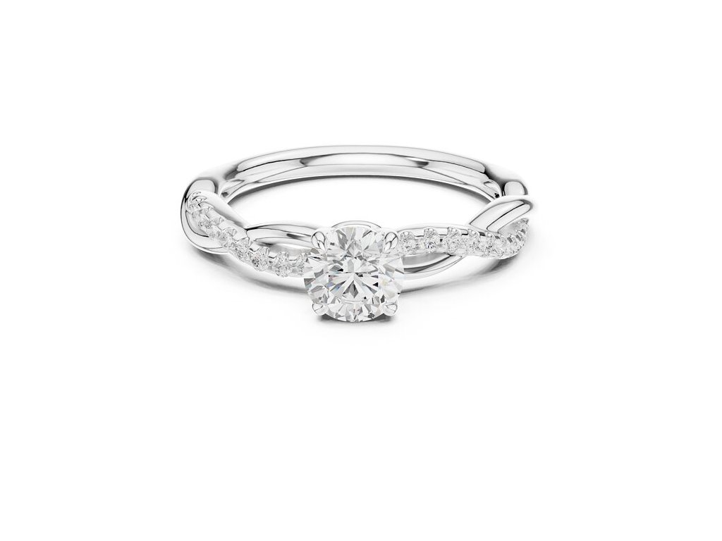 Prsteň Emika je zásnubný model s prepletenou šínou, do ktorej sú osadené drobné kamienky vedúce k centrálnemu okrúhlemu kameňu. Kombinácia jemných detailov a výrazného stredu vytvára elegantný vzhľad, ktorý je vhodný na zásnuby aj každodenné nosenie.