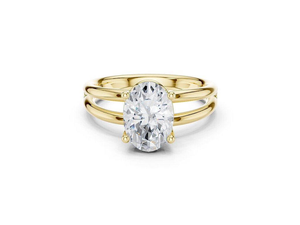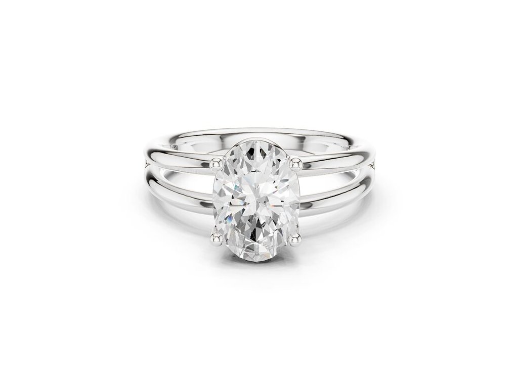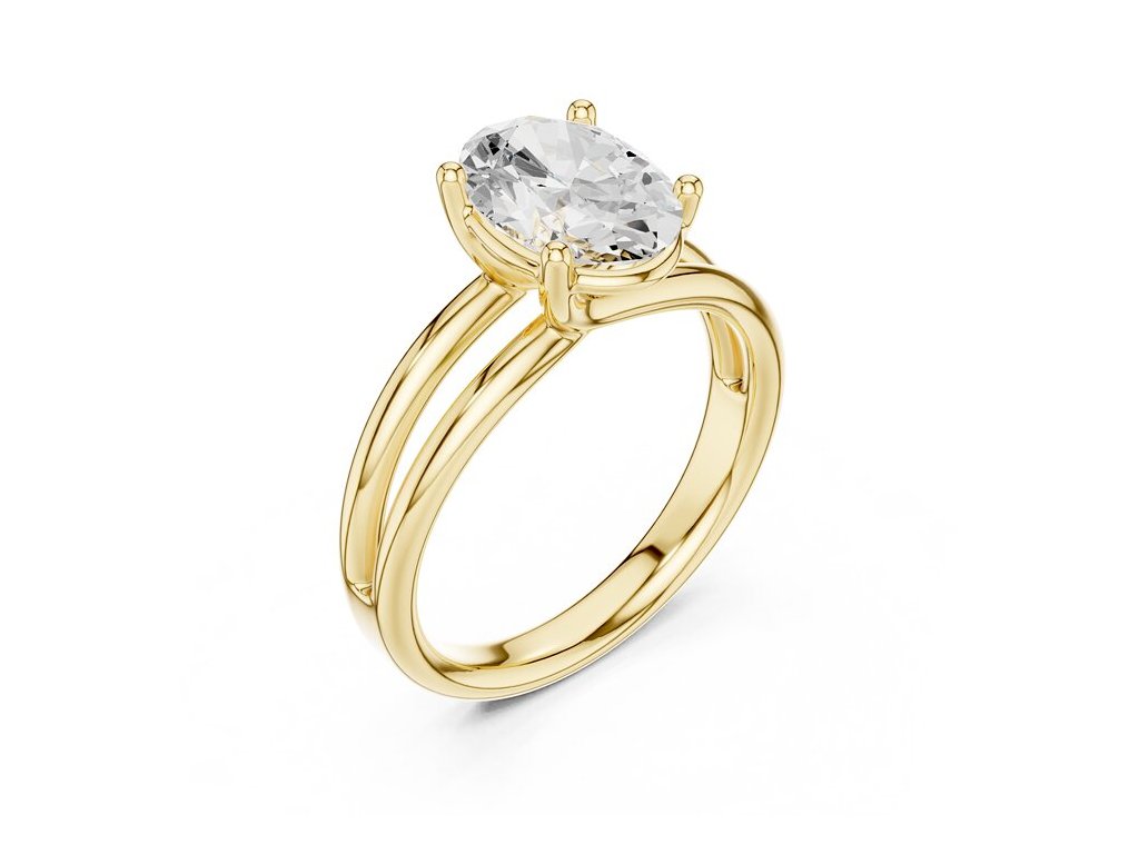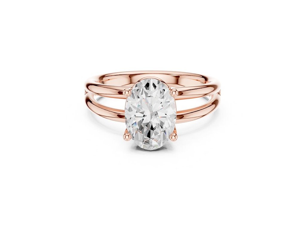 Prsteň "Kina" je solitér s oválnym centrálnym kameňom veľkosti 2.0 ct, ktorý vyniká svojím výrazným vzhľadom. Dvojitá šína dodáva prsteňu stabilitu aj moderný charakter a prirodzene zvýrazňuje tvar kameňa.