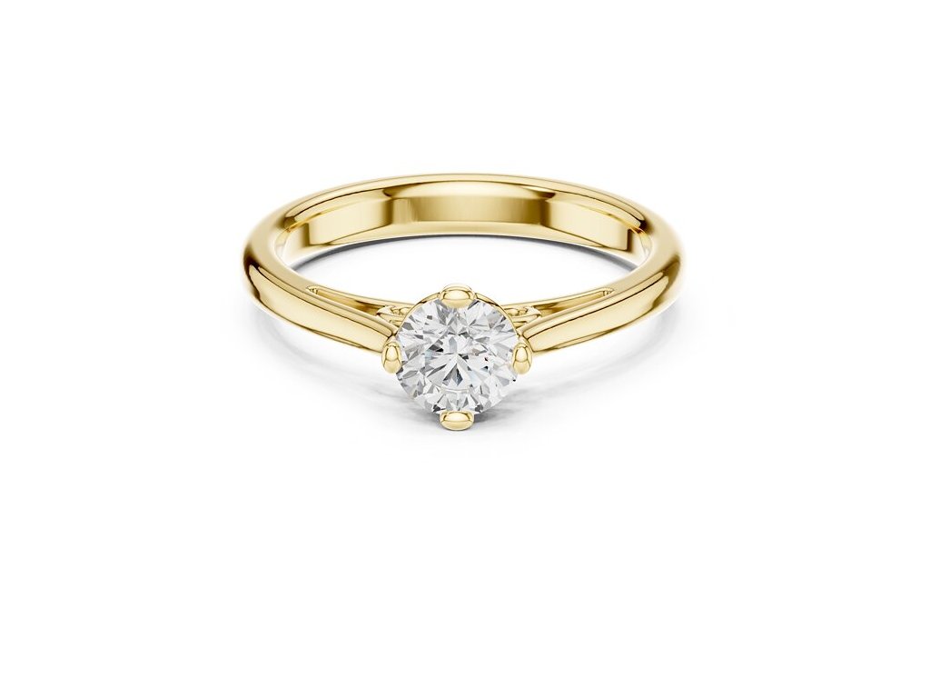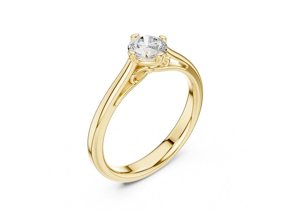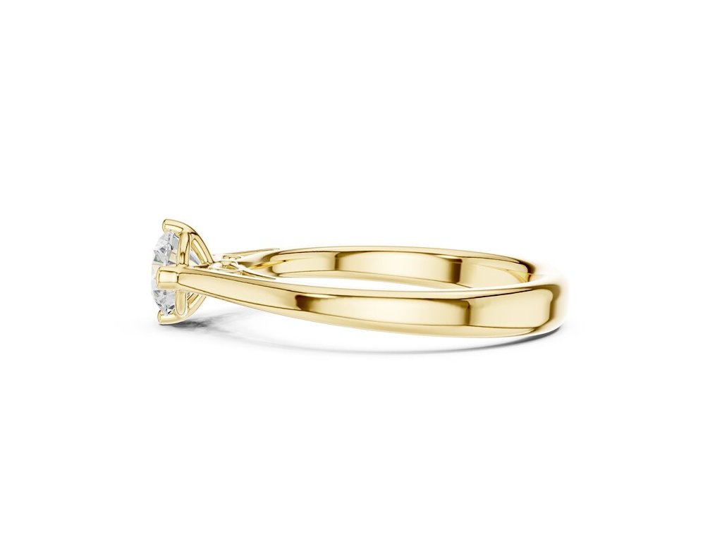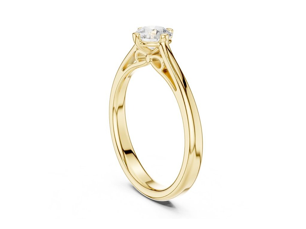Pri pohľade zboku uvidíte, že uchytenie kameňa tvorí jemná zlatá mašlička. Tento malý romantický detail robí prsteň výnimočným a pridáva mu na ženskosti. Je to ideálna voľba pre tie, ktoré hľadajú klasický zásnubný prsteň s nenápadným, ale milým prekvapením.