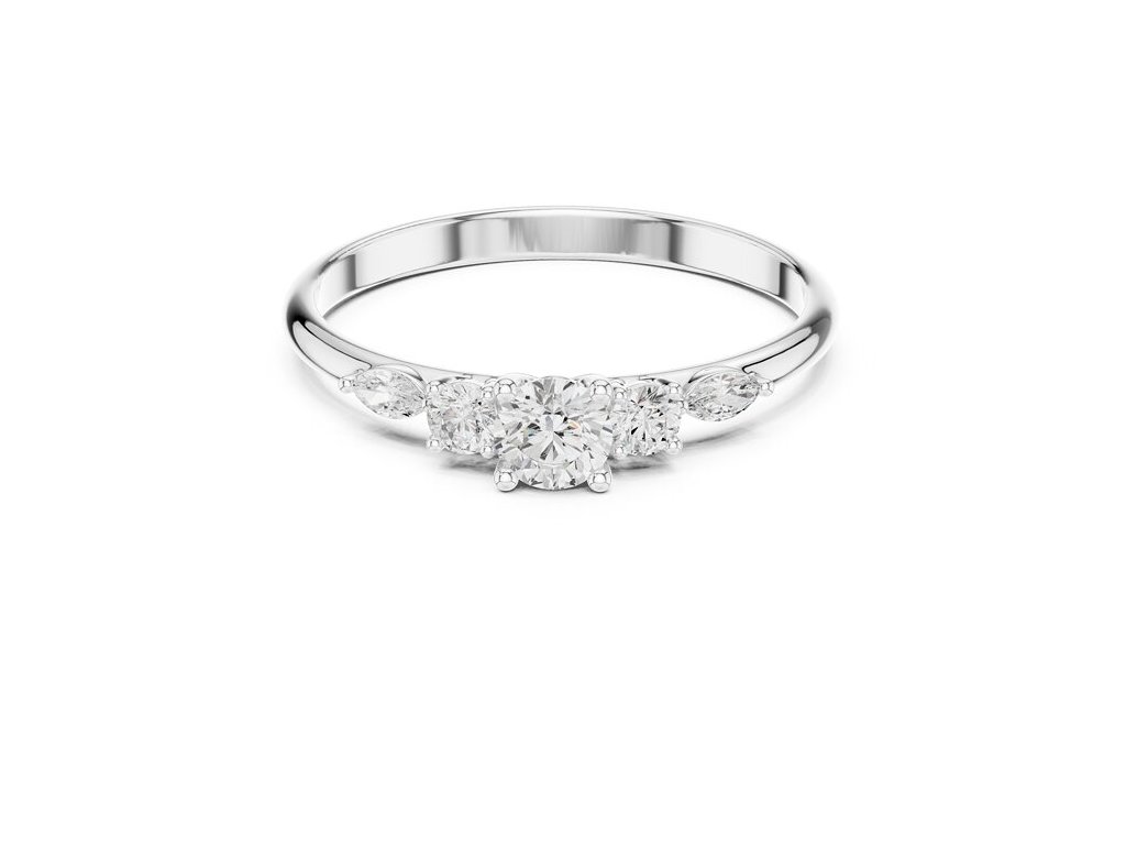 Bočné marquise kamene dodávajú prsteňu ľahkosť a sofistikovaný charakter. Vďaka precíznemu osadeniu pôsobí celý šperk vzdušne, no zároveň pevne a luxusne.